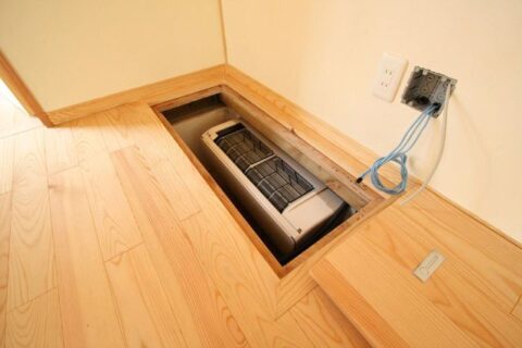 通常、室外部分になる床下を室内扱いにして、床下にエアコンの温風を出るように設置する家づくりがあるのです。